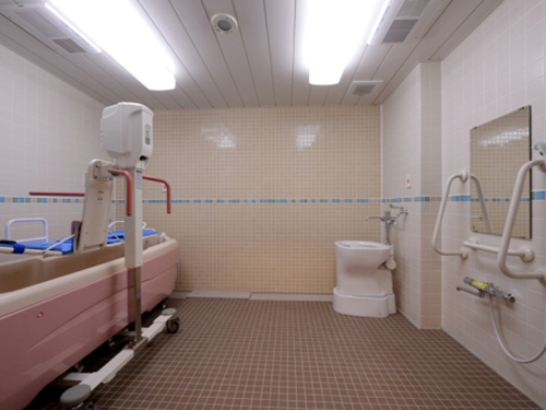 重度の方でもご入浴いただけるようスタッフの介助のもとに、寝たままの状態で入浴ができるストレッチャー式の機械浴をご利用いただけます。