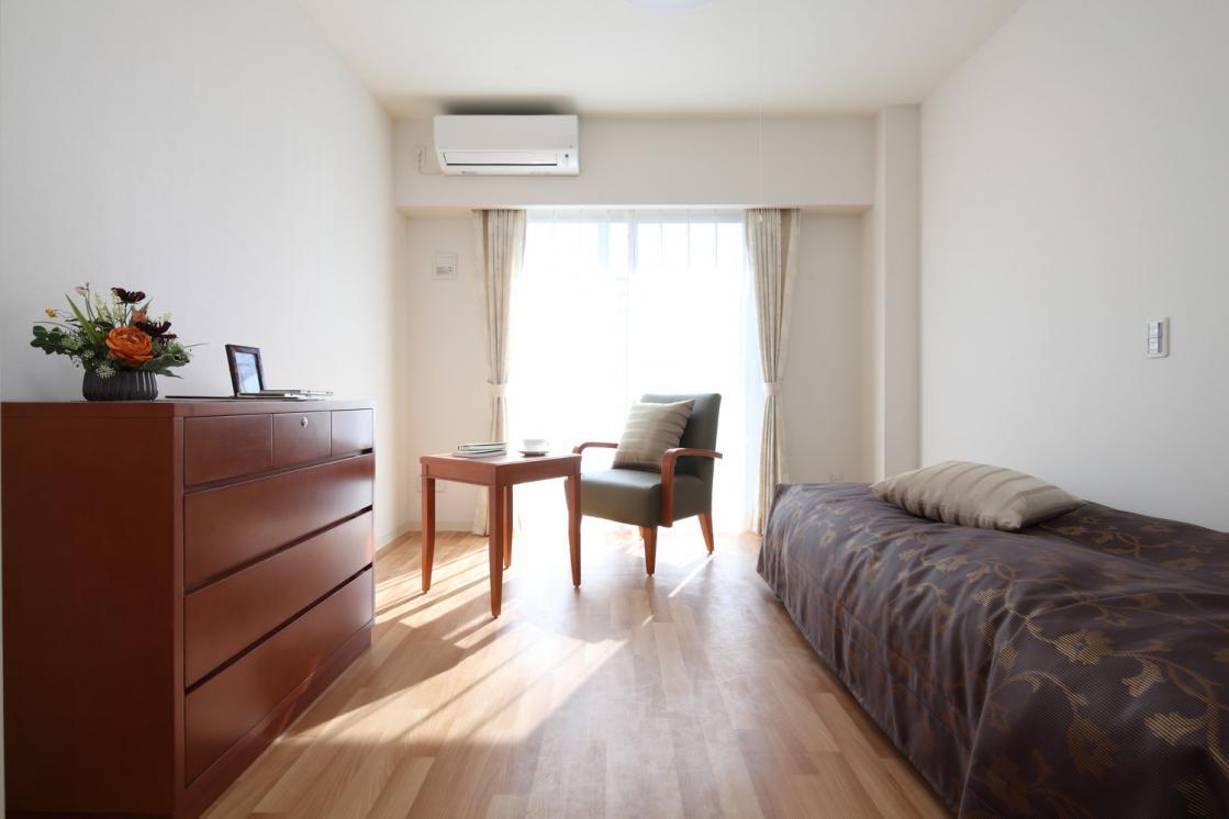 居室のご様子です。お好きな家具や使いなれたものをお持ち込みいただだけます。(※普段、ご自宅でご利用のものをお持ちいただいてかまいませんが、ガスストーブ・コンロ・ろうそく等、火災・事故の危険があるものの持ち込みは基本的にお断りさせていただいております。)
