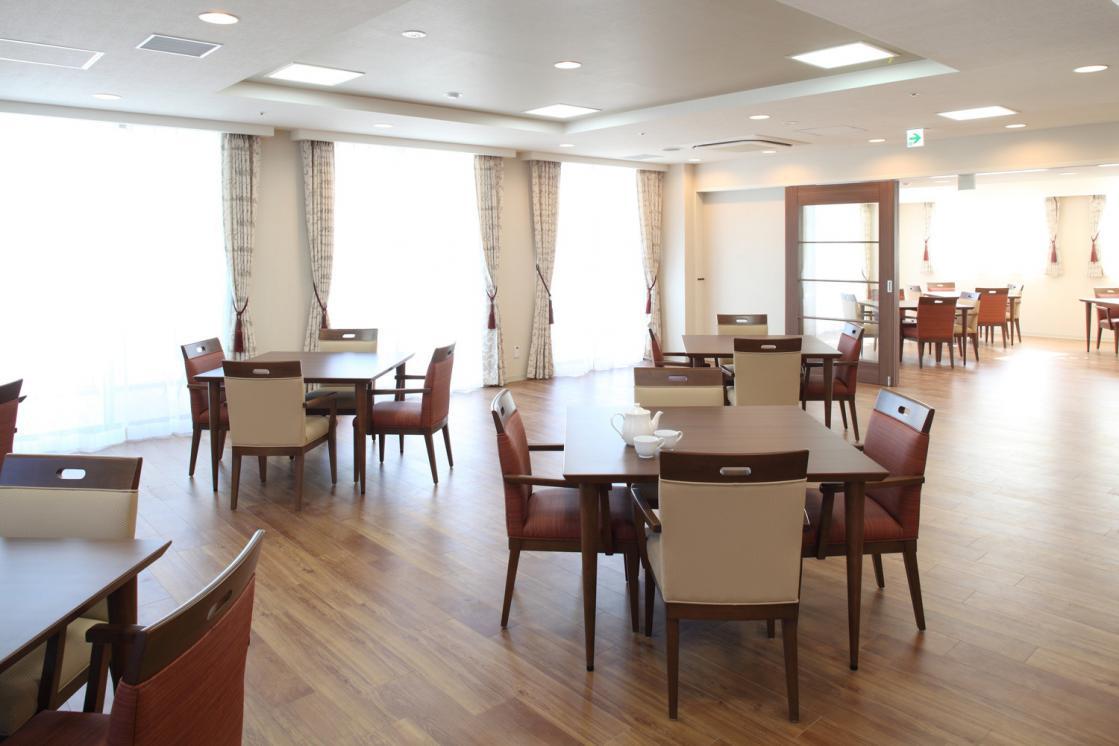 ウッドデッキ、ダイニングルーム、ティールーム、ビューティサロン(各種の外部サービス〔利用者実費負担〕を受けるための部屋)、ファミリールーム、機能訓練室、健康管理室兼事務室、浴室