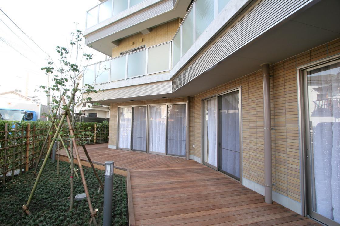 ダイニングから見えるウッドデッキには季節のお花を植えたり、近所の猫が遊びに来たりしており、ご入居者様も楽しみにしていらっしゃいます。
