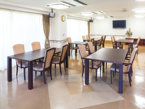 エントランスホール、リビング&ダイニング(食堂)※1、健康管理室兼ヘルパーステーション、一般浴室(車いす対応リフト付)、特別浴室、個人浴室、ランドリー、化粧室 ※1食事だけでなくイベント・レクリエーション・機能訓練等、日常生活上多目的に使用。