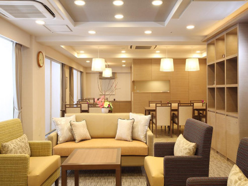 コミュニティルーム、ダイニングルーム、ビューティサロン(各種の外部サービス〔利用者実費負担〕を受けるための部屋)、ファミリールーム、機能訓練室、健康管理室兼事務室、浴室