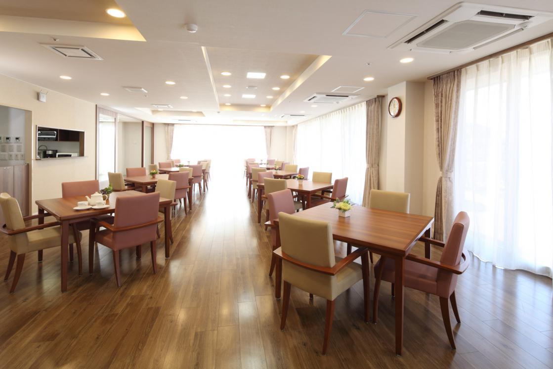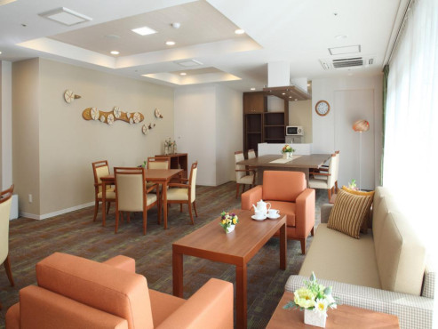 ダイニングルーム兼機能訓練室、ティールーム、ビューティサロン(各種の外部サービス〔利用者実費負担〕を受けるための部屋)、ファミリールーム、健康管理室兼事務室、浴室