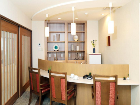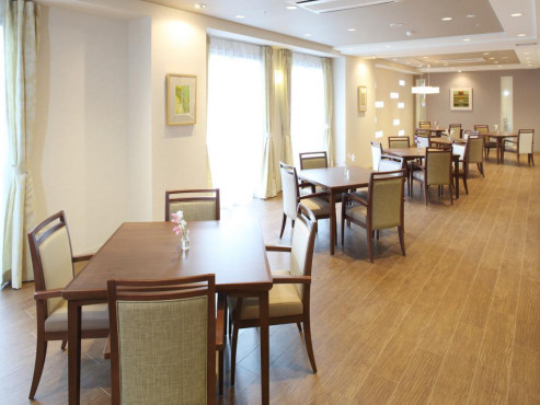ウッドデッキ、ダイニングルーム兼機能訓練室、ティールーム、ビューティサロン(各種の外部サービス〔利用者実費負担〕を受けるための部屋)、ファミリールーム、健康管理室兼事務室、浴室