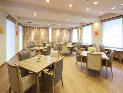 ダイニングルーム、ビューティサロン(各種の外部サービス〔利用者実費負担〕を受けるための部屋)、ファミリールーム、機能訓練室、健康管理室兼事務室、浴室