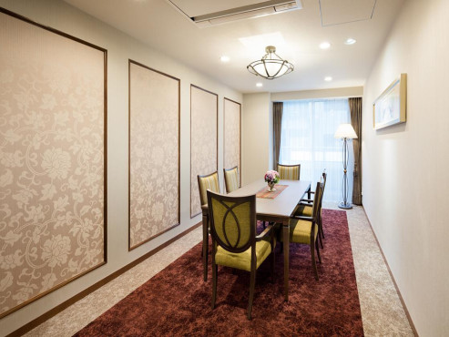 ご入居者様、ご家族様と貸し切りにして、心おきなく団らんやお食事(有料)などをお楽しみいただけるファミリールームです。