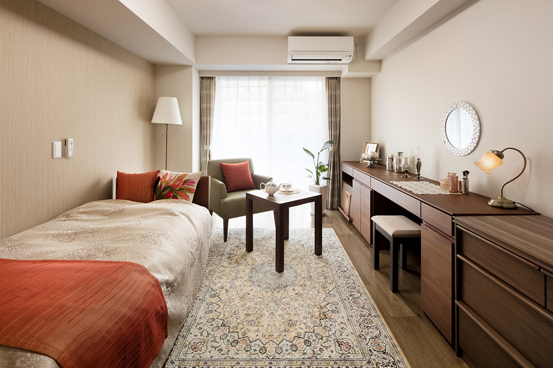 皆様をお迎えする空間として、また、ご入居者様におくつろぎいただける空間として、明るい中にも落ち着きがあり、ゆったりとお過ごしいただけるような空間です。