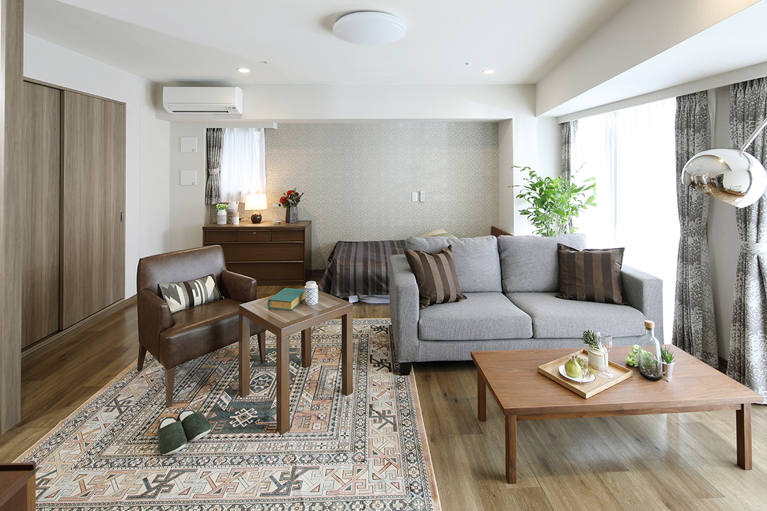 お一人でも、お二人でもご入居いただける居室です。広さは39.5㎡~約51㎡までのタイプをご用意。Aタイプ同様床暖房や備え付け家具はもちろん、お風呂やミニキッチンも配置しています。