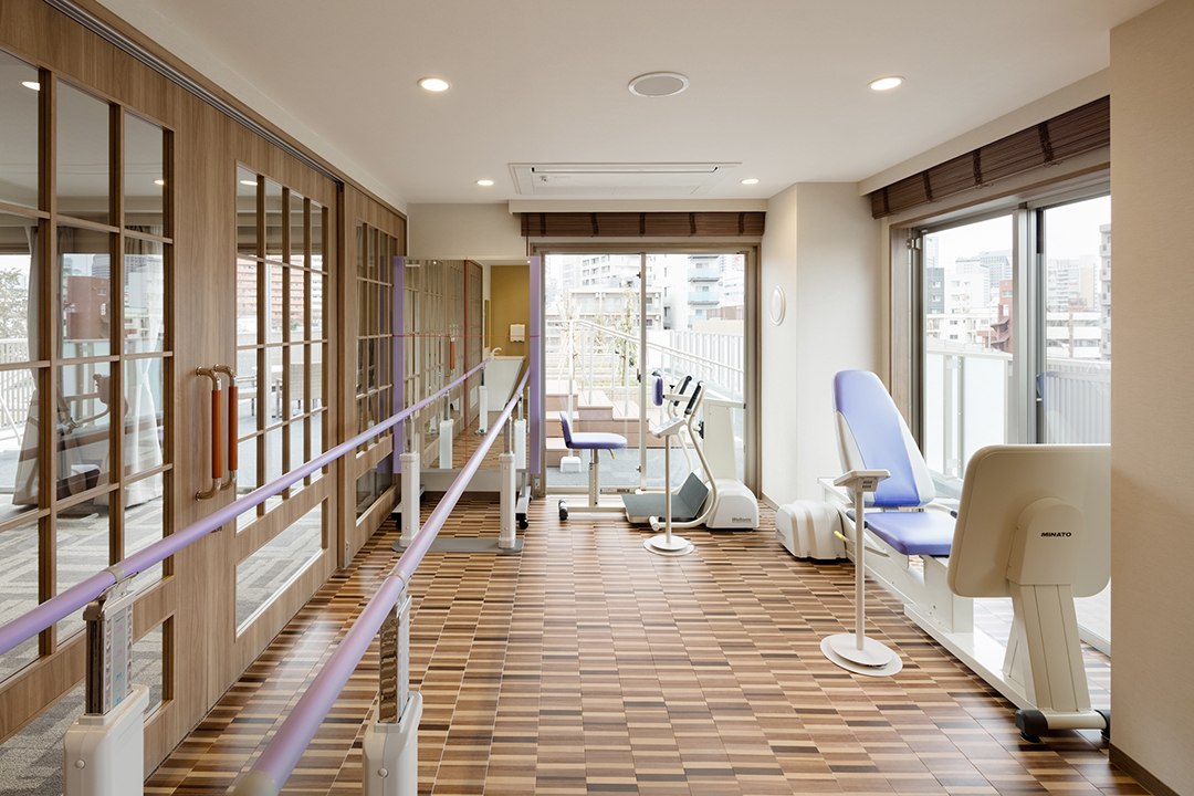 介護度進行予防運動や機能訓練指導員によるリハビリなど、いつまでもお元気にお暮らしいただけるよう身体機能の維持・向上に向けたトレーニングを行う部屋です。