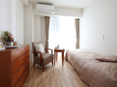 クローゼット、テレビ配線、ナースコール、温水洗浄機能付トイレ、介護用電動ベッド、洗面、電話配線、冷暖房設備 ※すべての居室にない設備もございます。