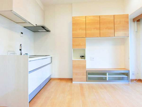 ・耐震ラッチ付きの造作家具で、動線も確保し家具転倒も防ぎます。防災セット・食料備蓄も完備。