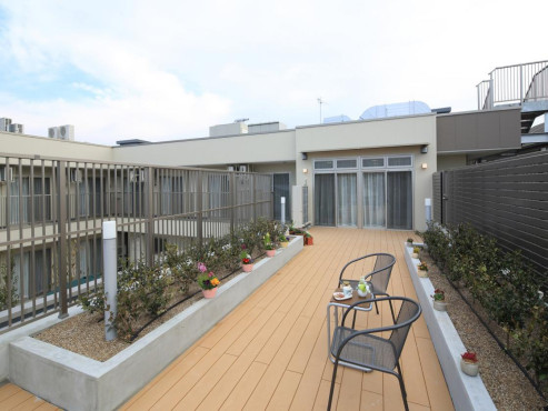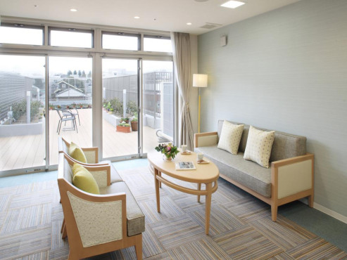 ウッドデッキ、ダイニングルーム兼機能訓練室、ティールーム、ビューティサロン(各種の外部サービス〔利用者実費負担〕を受けるための部屋)、ファミリールーム、健康管理室兼事務室、浴室
