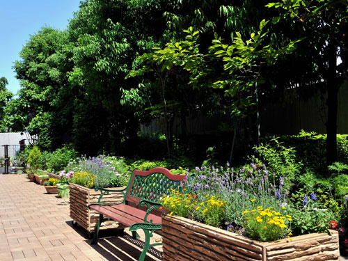 広い中庭を彩る四季の花々と豊かな木々は、ホームに深い癒しをもたらしてくれます。