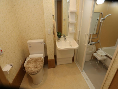 共用エリアに一人で入れるユニットバスがある施設