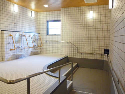 広々とした大浴場でくつろぎのひと時をすごせます。スロープが備わった浴槽はどなたでも無理なく入浴できます。続きを読む