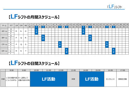 今までは、日常の介護サービスを提供するだけで手一杯になり、ご入居者ひとりひとりと接する時間を設ける為に、通常シフトとは別に、残業や休日出勤等の時間を費やすことが必要でした。その問題を改善する為に、「ソナーレ」ではシフトの組み方を変更。 月2回、各スタッフに特別シフトを設け、丸一日担当のご入居者と過ごし、その方に寄り添う時間を設けました。 "ご入居者に寄り添う時間が介護をする時間と別にある"ことで、職員の負担も減り、再現性の高い、持続可能なサービス品質を実現しています。